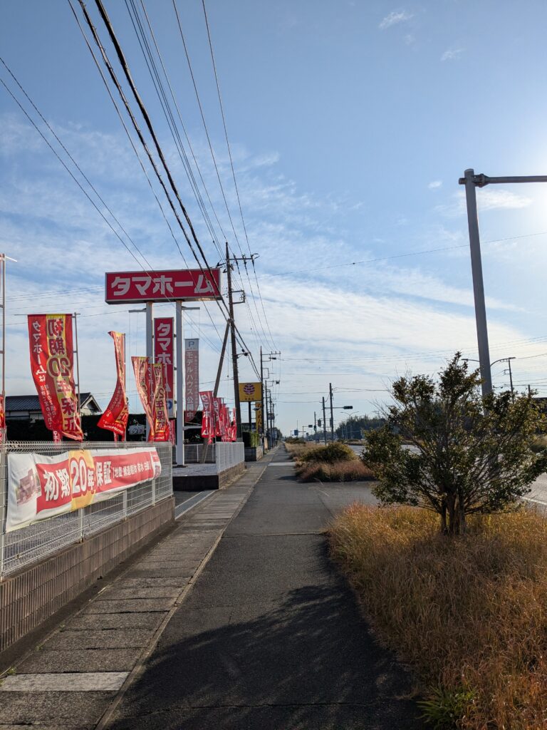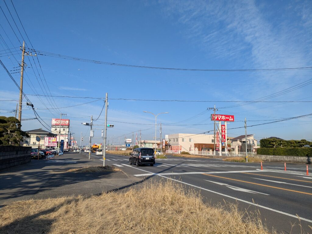 左手にタマホームと幸楽苑が見える交差点を右折してください。